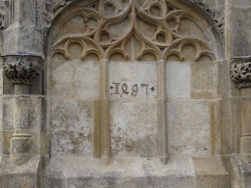 Стены фонтана украшены очень красивыми узором и, витиеватыми и даже, я бы сказала, изысканными. Каждую грань колодца венчают кресты, характерные для времен поздней готики. Сами кресты тоже достаточно вычурные, мне показалось, что архитектор всеми этими украшениями стремился привлечь к колодцу максимум внимания.