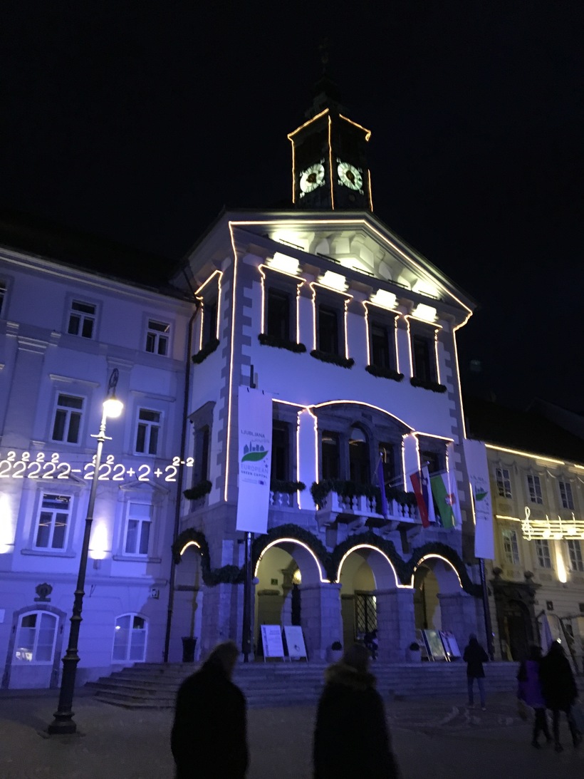 Ратуша в Любляне, осталась в моей памяти именно из-за необычной новогодней подсветки. Все таки непонятно, что означали эти двойки.