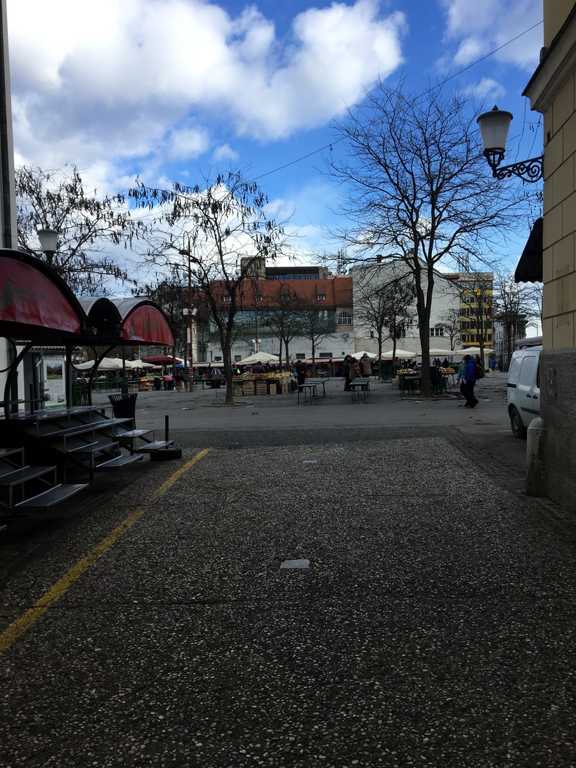 Это показалось мне довольно странным, обычно я всегда обращаю внимание на скульптуры. Может быть она была на реконструкции. Мне жалко было терять время, гуляя по рынку, потому что, покупать мне ничего было не надо, а сказать, что рынок самобытный и словенский, достаточно сложно. Самый обычный рынок. Так я и покинула рынок без особого сожаления, решив для себя прочитать несколько стихотворений на досуге народного поэта Словении -Валентина Водника.