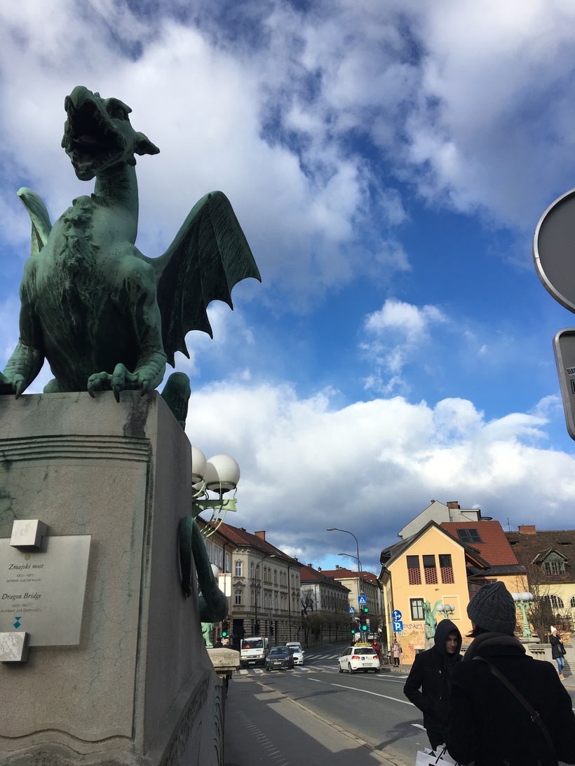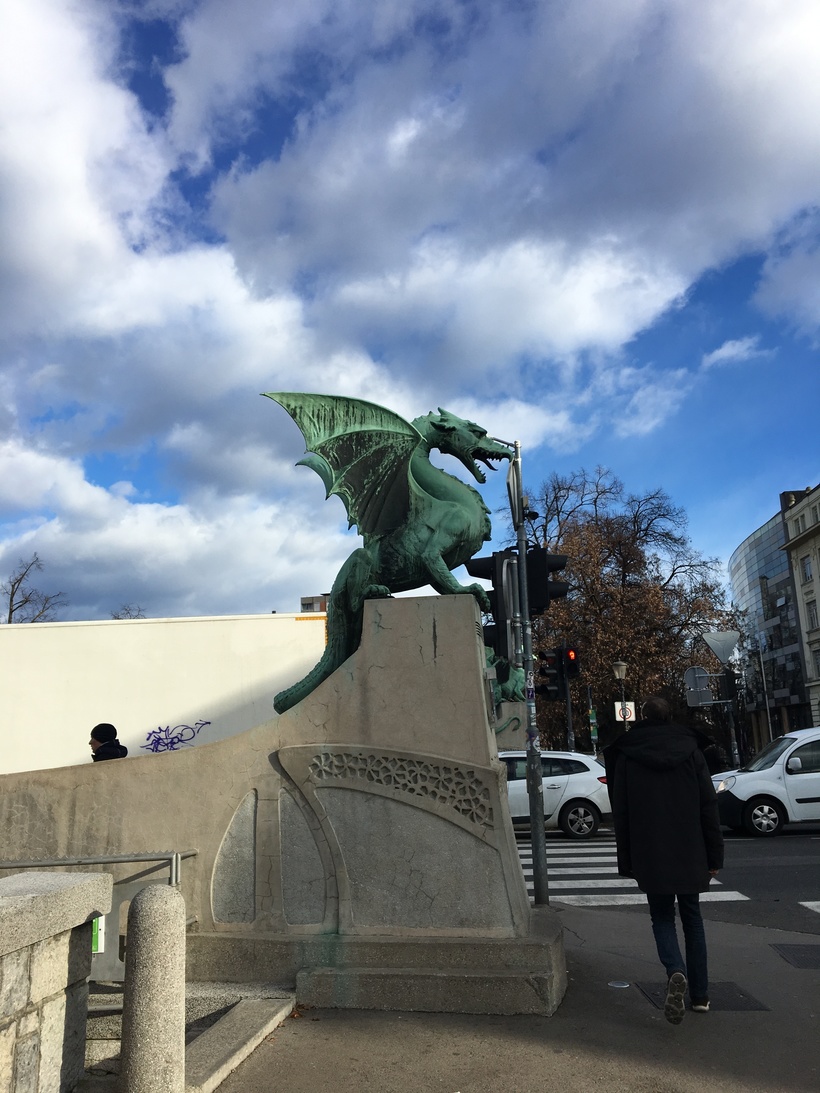 Любляну, столицу Словении я посетила в этом году на рождественских праздниках впервые. Центральная часть города, Старый город с трех сторон окружен речкой Любляницей. Почти сразу мне стало понятно, что мостов здесь очень много и все они разные. Однако, один мост оказался самым древнем и был включен в список основных достопримечательностей города. Это был мост Драконов. В некоторых источниках Дракон даже упоминается, как символ Любляны и именно из-за этого моста.