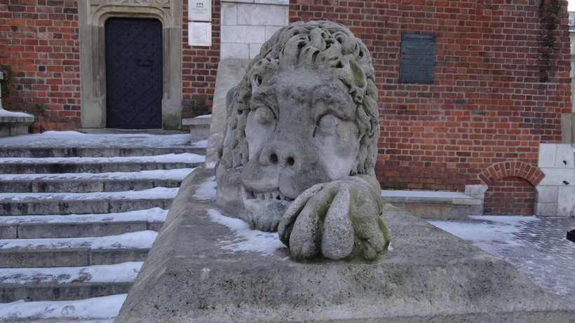 - Башня ратуши. Это все, что осталось от краковской ратуши. Помимо прочего, примечательна тем, что ее вход сторожат две неодинаковые скульптуры отдыхающих львов. Впрочем, достаточно взглянуть на фасад Мариацкого костела, чтобы понять, что асимметрия для Кракова — обычное дело.