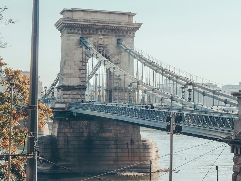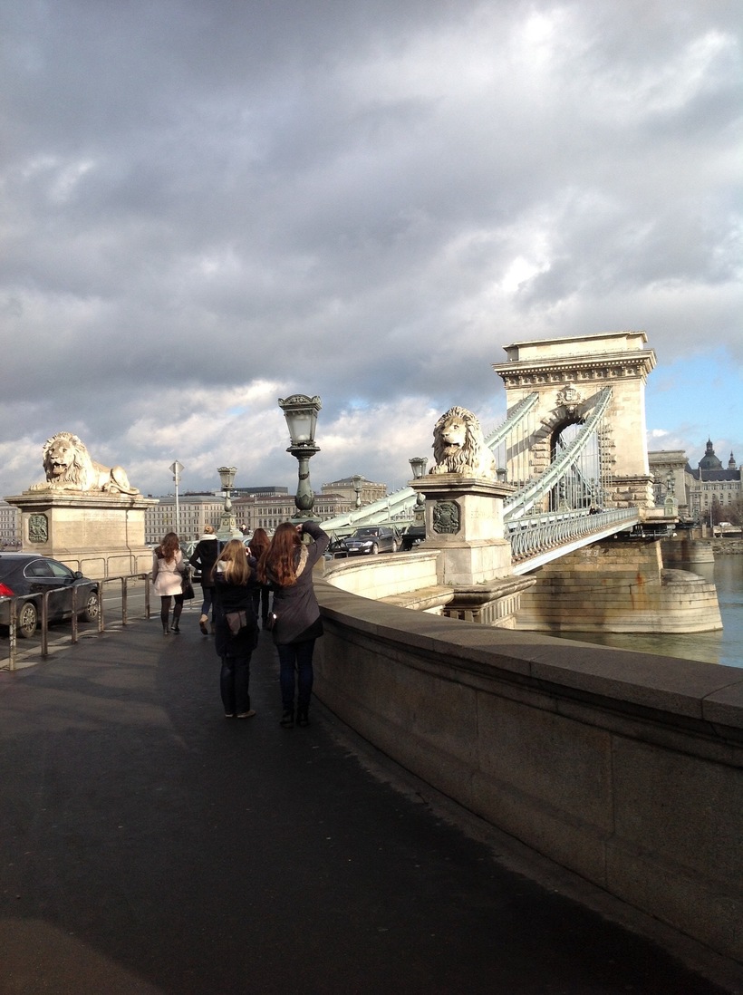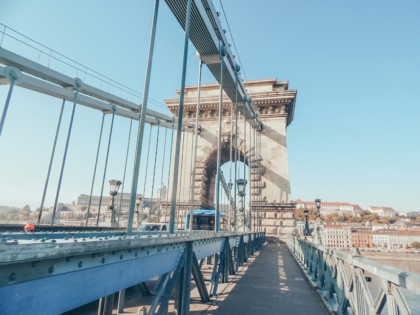 Об истории моста я навела справки заранее, почерпнув информацию из путеводителя, лежащего на стенде в моём хостеле. И вот что мне удалось узнать: около двухсот лет назад два города под названиями Буда и Пешт, раскинувшиеся по обе стороны Дуная, ещё не были объединены. Горожанам приходилось пользоваться понтонами для переправы в летнее время, а зимой пересекать реку по льду. Не самый удобный способ, особенно тогда, когда лед уже тронулся, но пока не растаял. Цепной мост (или, как его называют местные, Старая Дама) стал первым постоянным мостом, связавшим два берега, протянувшись от площади Иштвана Сеченьи в Пеште и площади Кларка Адама (инженера, возглавившего строительство) в Буде.