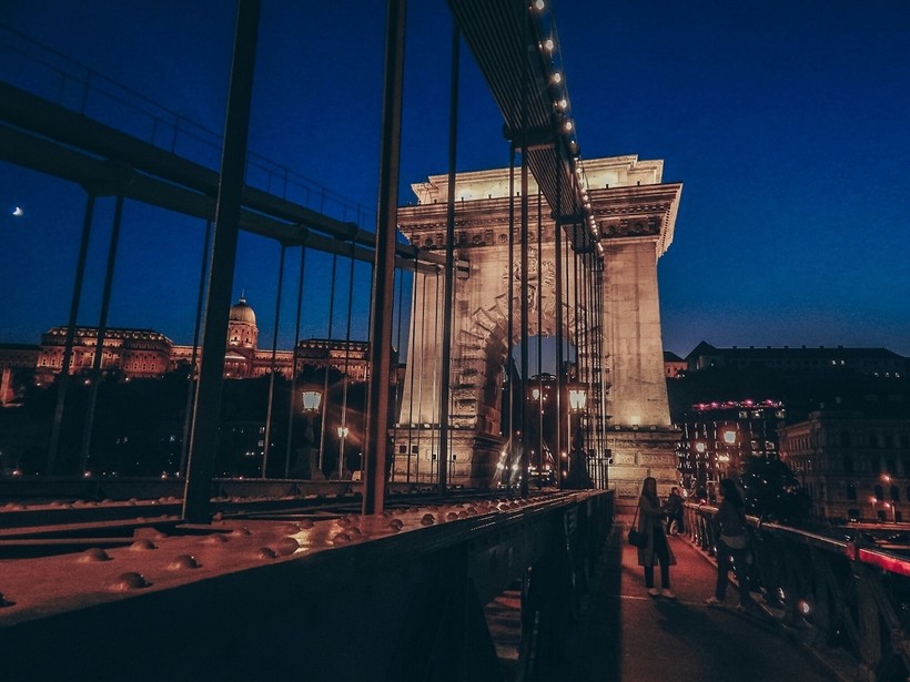 Мосты в Будапеште по праву считаются одной из главных достопримечательностей, а самый известный из них и, пожалуй, самый привлекательный для туристов и путешественников, – это Цепной мост. Мое знакомство с ним состоялось в первый же день моего пребывания в Венгрии. По правде говоря, я собиралась пересечь Дунай, чтобы подняться к Рыбацкому бастиону, но не успела до наступления темноты и решила отложить этот маршрут до следующего утра. Тем более что передо мной уже открывалась не менее завораживающая картина: мост Сеченьи, загоревшись сотнями маленьких фонариков, манил меня издалека. И я пошла на его свет.