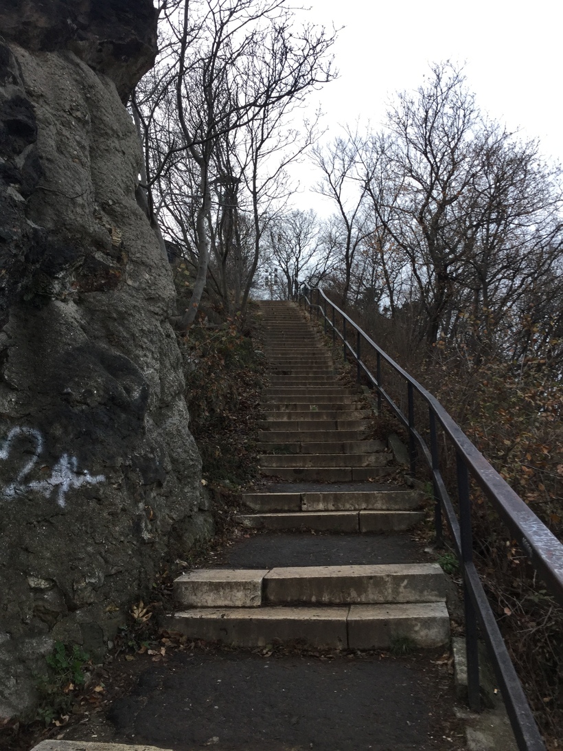 В предпоследний день ближе к вечеру я решила подняться на гору Геллерт. Есть несколько путей, откуда можно начать путь, я начала свой от купален с одноименным названием. Было что-то завораживающее в том, что в этот день погода была мрачноватой, поэтому фотографии с видом на Пешт получились очень атмосферными :)