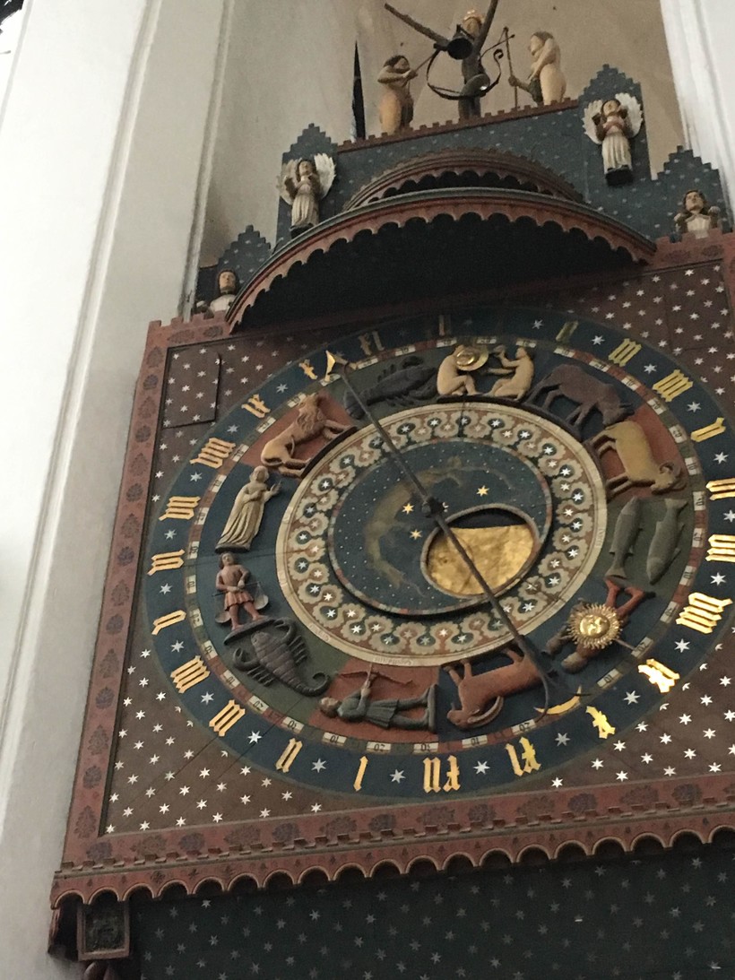 На фото астрономические часы, которые можно увидеть на одной из колонн.