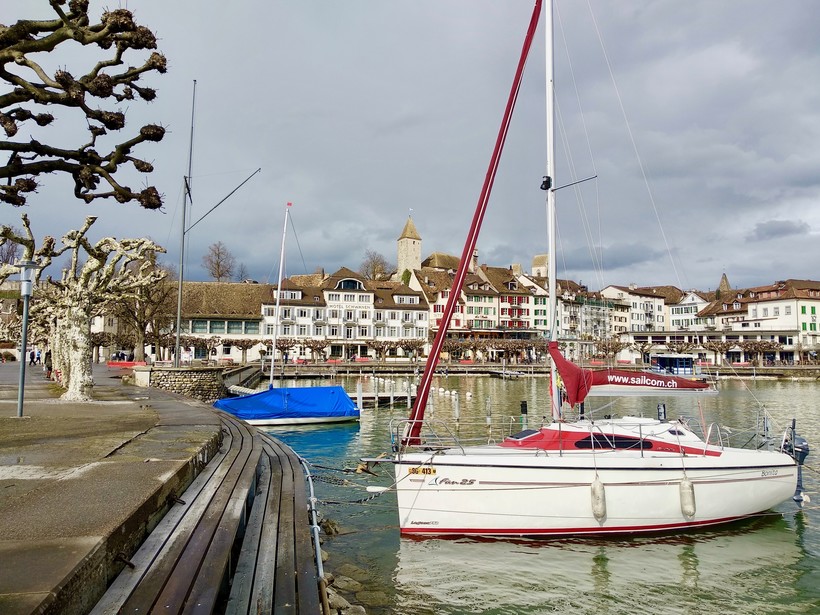К слову, сам городок Рапперсвилль-Йона оказался очень приятным и уютным. Здесь есть крепость, по которой можно прогуляться и полюбоваться видом сверху, маленькие улочки и конечно же все атрибуты водной тематики – причалы, яхты, чайки…