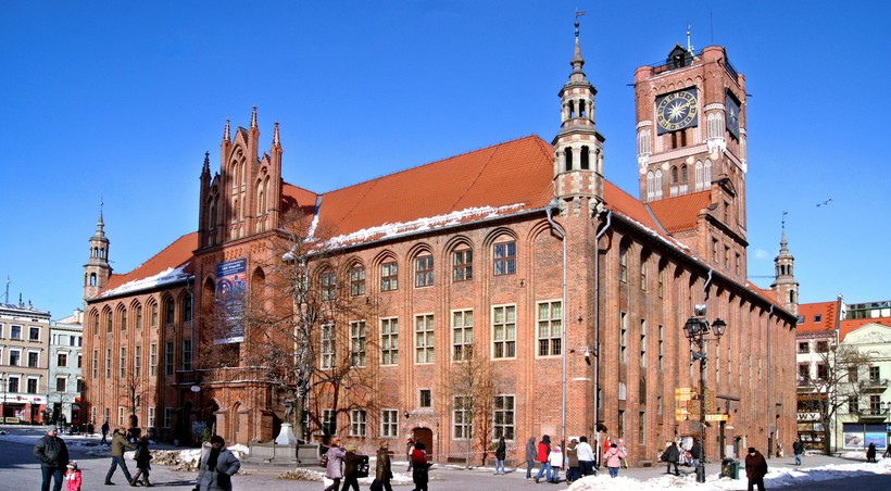 - Много интересного поблизости. Начать хотя бы с ратуши, где за 21 злотый (около 5 евро) можно посетить огромный внутренний музей, где мне запомнилась крутейшая коллекция произведений готического искусства, и подняться на смотровую, которая работает и зимой. Кроме того, на Рыночную площадь выходит Дом под Звездой, где выставлены произведения искусства народов Востока. А вообще старый Торунь — настоящий город-музей.