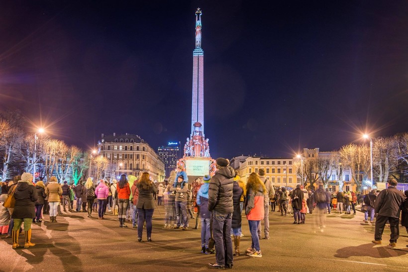 Короче. Памятник есть, торчит посреди большой площади, на которой частенько проводятся всякие мероприятия. Кстати, от Старого города туда ведет широченный пешеходный переход через улицу, где можно всегда идти, не глядя по сторонам. Тут тебя пропустит даже трамвай. В Риге всего пара-тройка таких мест, поэтому наслаждайтесь.