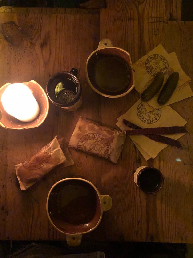 Туда идут за атмосферой, за вкусным супом из оленя и пирожками. Несмотря на весь средневековый дизайн интерьера, там принимают карты.