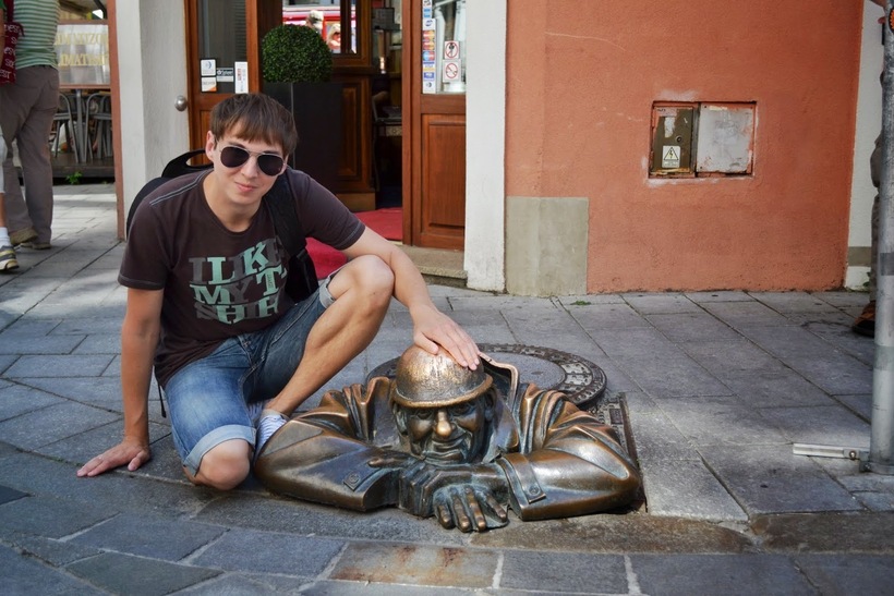 Пожалуй, это самая оригинальная из всех скульптур Братиславы, которые с полным правом можно назвать визитной карточкой города. Рекомендовать вам во что бы то ни стало сфоткаться с сантехником я не буду, так как сам этого не делал. Не буду рекомендовать и искать его целенаправленно. Почему? Тут все просто: старый город Братиславы небольшой и достаточно компактный, так что, если вы решите по нему прогуляться, наткнетесь на сантехника с вероятностью 100%. Я и сам хоть и знал о его существовании, но даже не думал искать Чумила целенаправленно.