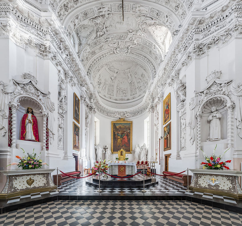 - Расположение. Тут я отмечу не только то, что до горы легко добраться и по дороге трудно заблудиться, но и тот факт, что подъем на гору будет стимулом посетить после этого еще один знаковый объект Вильнюса, расположенный чуть в отдалении от старого города. Я имею в виду костел Петра и Павла, до которого, если вы дойдете до Горы Трех Крестов, останется всего порядка 1 км. Пусть вас не обманет аскетичный экстерьер собора — обязательно загляните внутрь и ради интереса попробуйте сосчитать все скульптурные элементы в его интерьере.