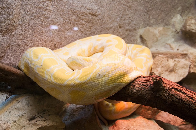 Очень люблю тропический домик. Там, кроме всего прочего, есть ночная секция, где можно понаблюдать за животными, которые при свете не активны. Сначала вообще ничего не видишь, а потом глаза привыкают, и становится так интересно! Даже надписи на табличках из серии «кто в теремочке живет» можно разобрать. Кроме этого, в тропическом домике обитают лягушки разных цветов и размеров, откровенные жабищи, несколько флегматичных крокодилов и один вечно сонный питон-альбинос.