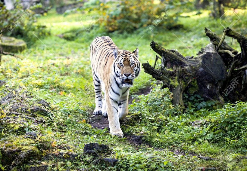 Манула я не видела, а вот тигра – да! Хотя у него большая территория и он любит заснуть где-то в глубине ее. Однако часто валяется и на видном месте. Или стоит на тропинке и задумчиво созерцает окружающих через стекло. И не понять: то ли философствует втихаря, то ли не очень сытый...