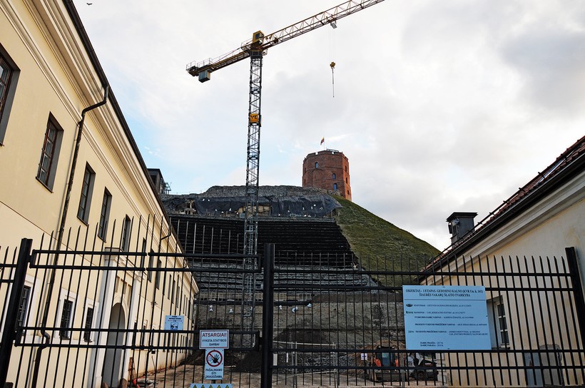 Замковая гора — это холм, узнать который можно по характерной башне, известной как Башня Гедимина. Это все, что осталось от виленского замка, фундамент и еще один небольшой восстановленный фрагмент которого также просматриваются на холме.