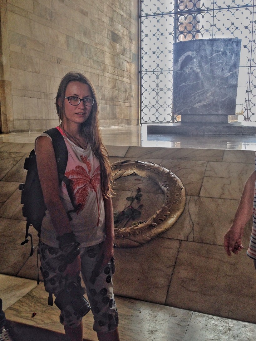 На самом деле в этом гигантском здании с квадратными колоннами находится только так называемая мемориальная плита, никакого тела Ататюрка под ней нет. Оно лежит в специальной комнате несколькими этажами ниже и окружено небольшими урнами с землей, взятой из каждой турецкой провинции. Входить в нее простые смертные вроде меня не могут.
