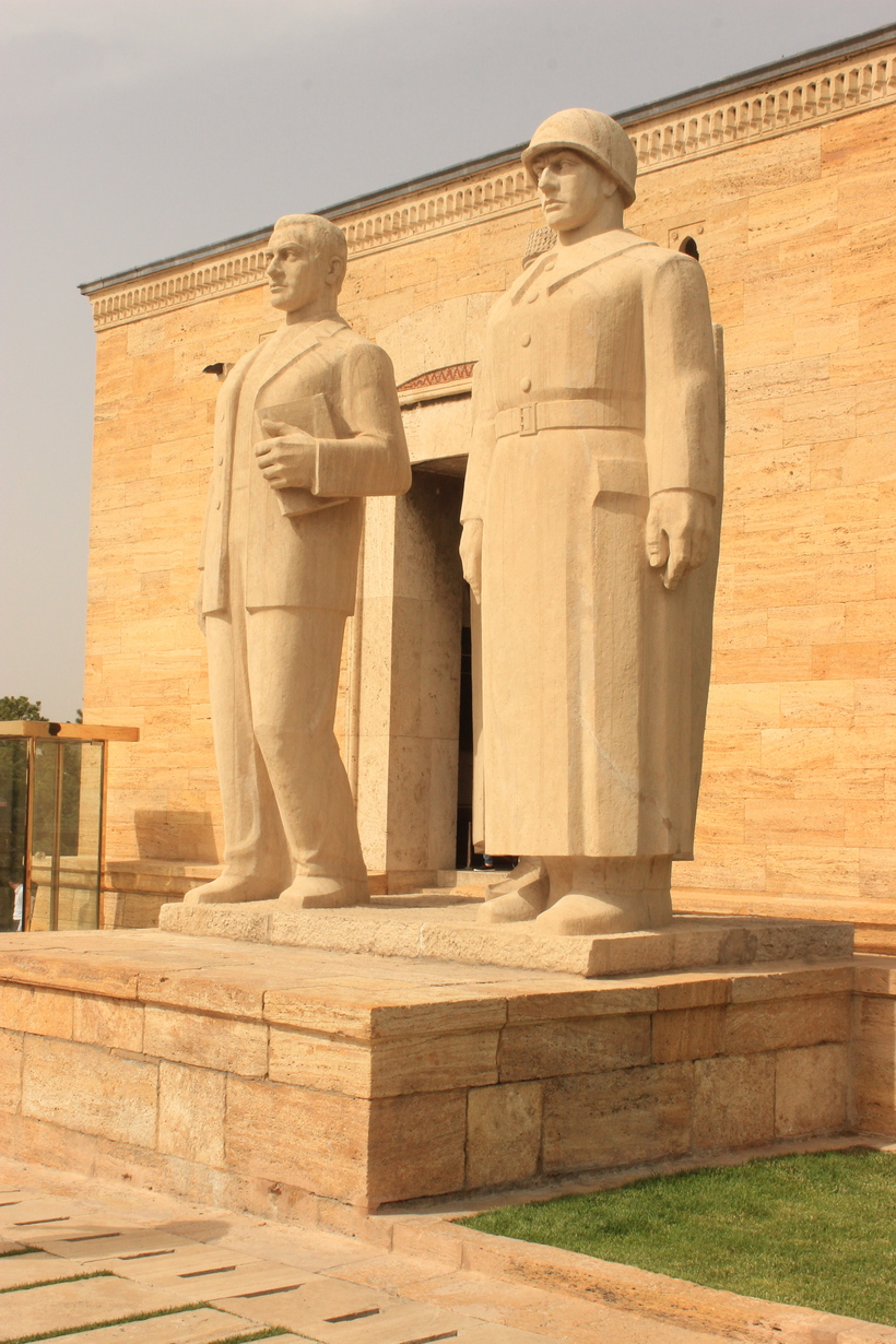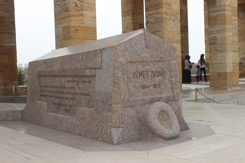 По бокам входа в усыпальницу выбиты изречения Ататюрка и второго президента Турции, его правой руки и друга - Исмета Инёню. Кстати захоронение последнего расположено прям напротив главного здания и оно очень скромное.