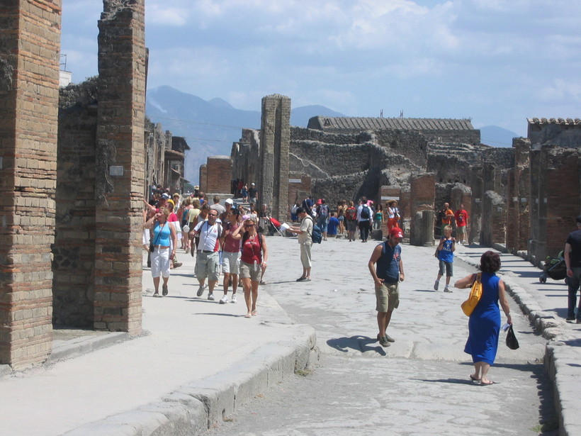 Одним из ярких дней в поездке был день посещения города Помпеи. Этот уникальный город был мне знаком по картине «Гибель Помпеи». Извержение вулкана затопило город горячей лавой, похоронив всех его жителей. Это случилось много веков назад, под слоем пепла древний город прекрасно сохранился и когда ученные его откопали, было сделано множество уникальных открытий. Раскопки ведутся до сих пор, но часть уже полностью исследованных территорий открыли для туристов.