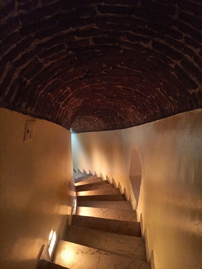 Наверху так же находится кафе, где Вы можете насладиться турецким кофе или чаем, созерцая невероятный Стамбул. Но цены там чуть дороже естественно, поэтому мы решили закончить нашу экскурсию. Я увидела спуск по ступенькам, который выглядит немного пугающе даже при свете дня), но меня, как любителя приключений, было не остановить. С очень низкими потолками и узким проходом, бесконечной винтовой лестницей, наш путь занял минут 5, хотя казалось, что дольше.