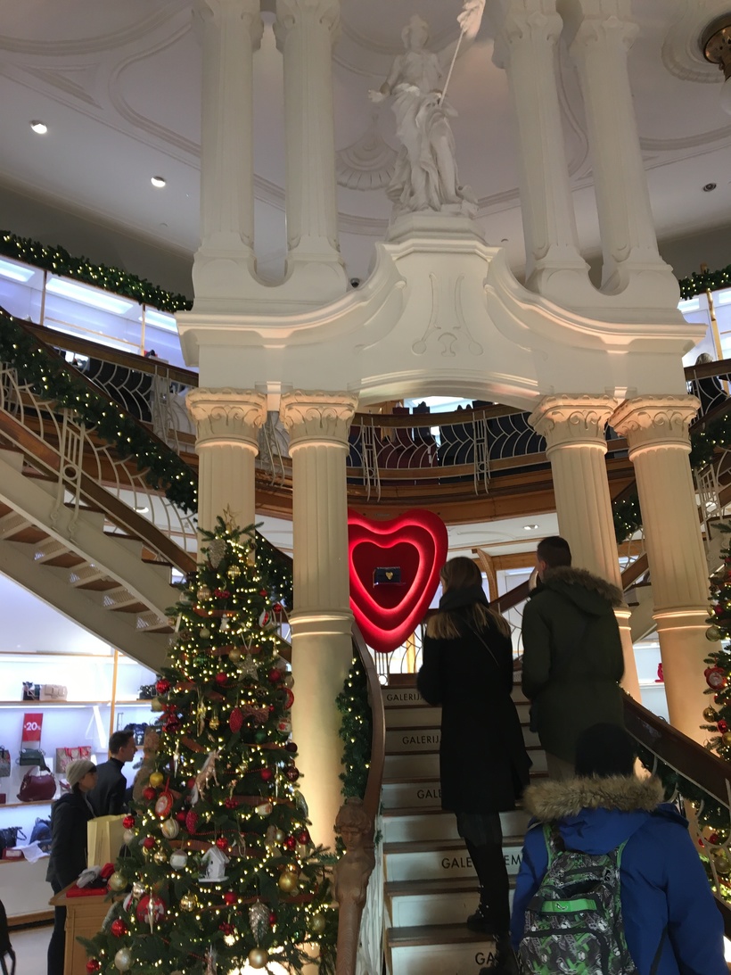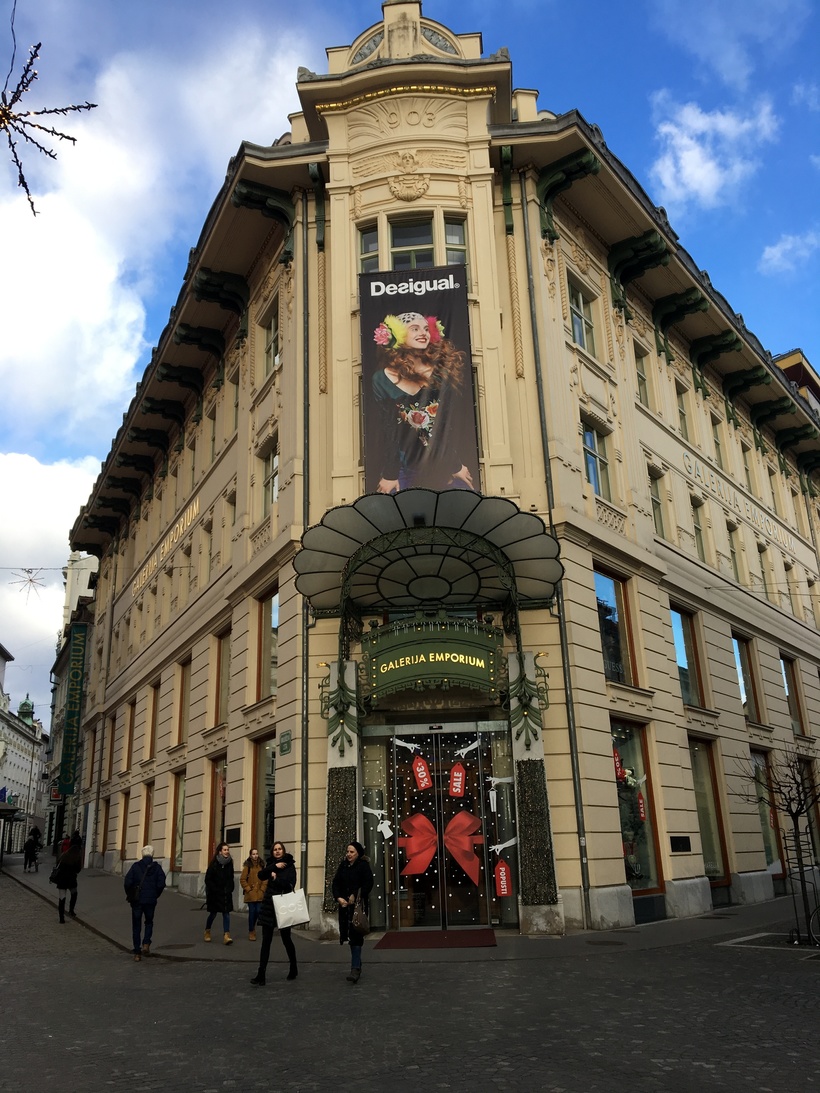 Возвращаясь в отель я заметила, что церковь открыта и посетила её. В церкви, украшенной к Рождеству и под звуки органа, я провела несколько потрясающе приятных минут. Рядом с церковью расположен старейший магазин Любляны - галлерея Эмпориум.