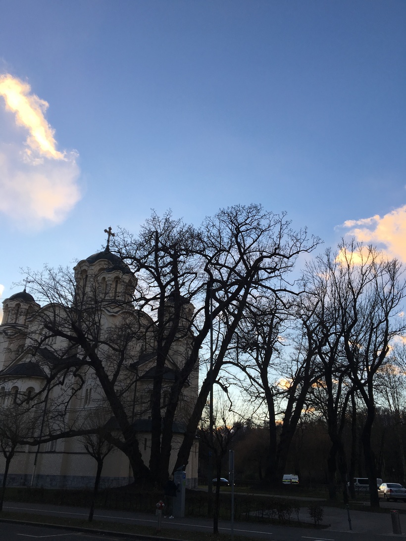 Прямо рядом с парком была расположена православная церковь. Солнце практически село и я не рискнула пойти в темный парк, решив, что утром эта будет более интересная прогулка.