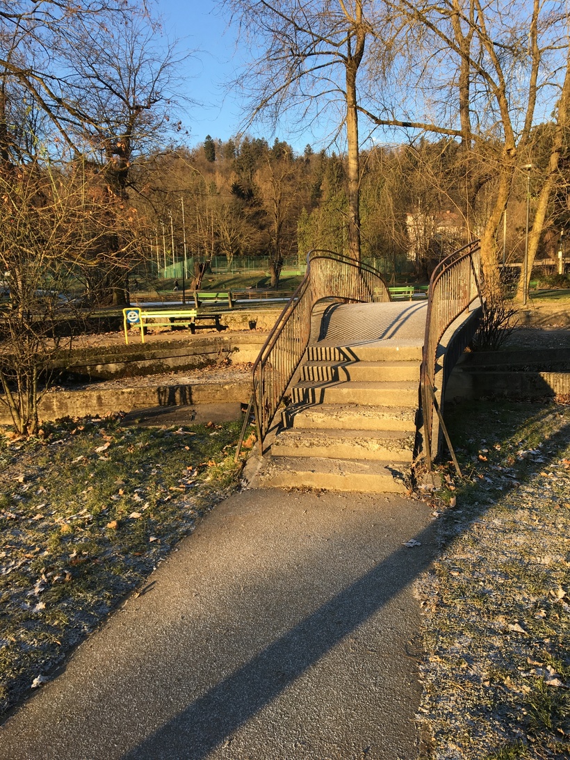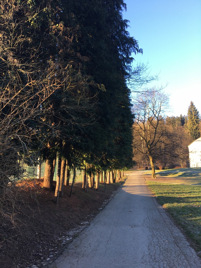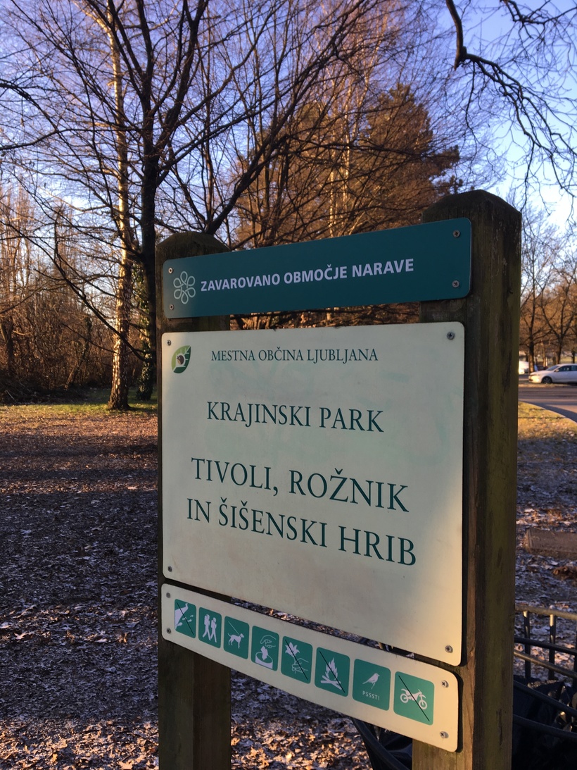 На Гугл картах он обазначен большим зелёным пятном, недалёко от центральной части города. В первый же день моего насыщенного посещения Любляны я пошла посмотреть на парк. К сожалению темнеет зимой рано и я смогла увидеть только парк издалека.