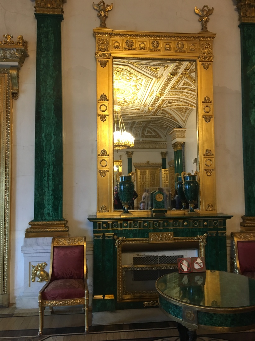 В Эрмитаже три этажа и очень много разных "крыльев" довольно понятная схема направляет тебя во время осмотра. Но у меня не было цели осмотреть все, мне хотелось просто погулять по залам, знакомясь с музеем, который я почти не помнила. На втором этаже начинаются парадные залы, многочисленные покои в разных цветах мрамора со старинной мебелью. Малахитовый зал, который я немного помнила, очень понравился.