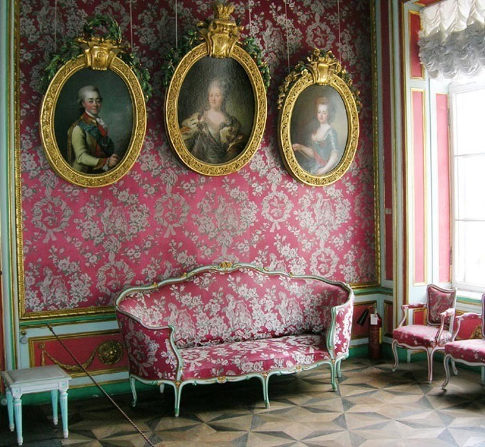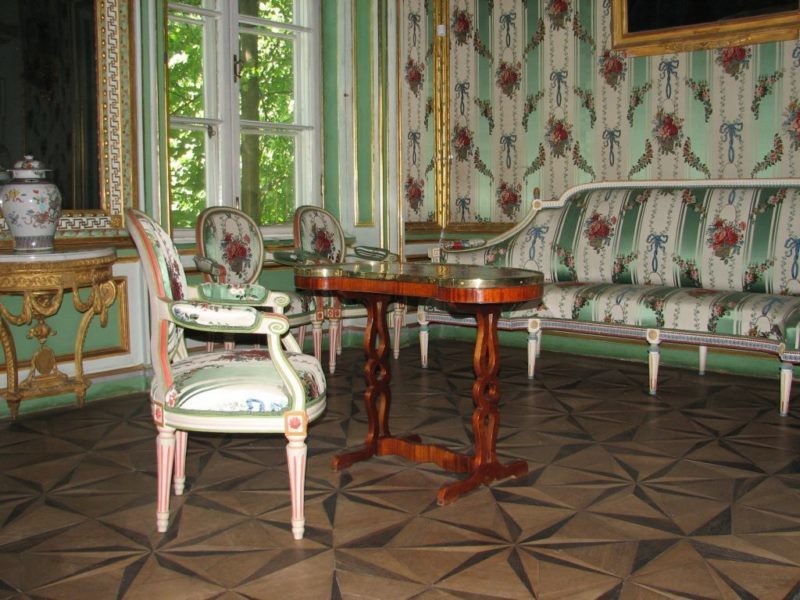 Осматривая всё это убранство, понимаешь, сколько средств сюда вложено, мммм, государственных в то время, есть комната «малиновая», даже стены в шёлке, а пол сделан из трёх видов дуба.