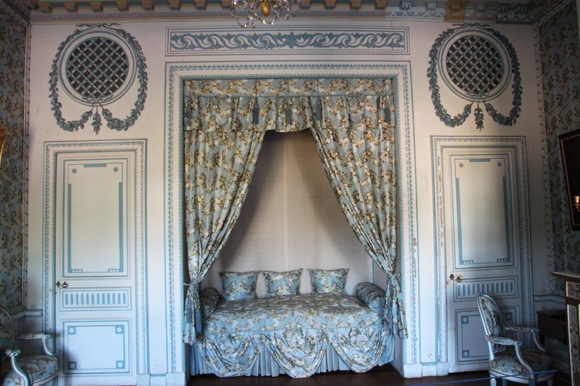 Здесь я поняла разницу между опочивальней и просто парадной спальней, в первой всё настолько тихо, что даже часики боялись громко тикать, а в парадной всё напоказ с большим балдахином. Кстати, на фото именно скромная спальня.