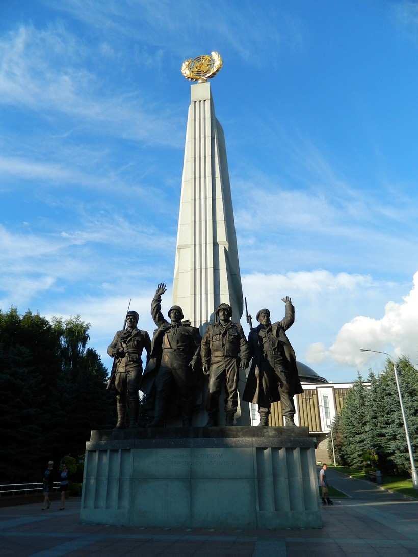 Естественно, брусчатка вся ровная и вычищенная. Напротив фонтанов стелы, в которых чувствуется стать и мощь, каждая из них посвящена отдельно кому-то: партизанам, труженикам тыла т.д. Очень торжественно, но почему-то мне было печально, всё-таки столько жизней погублено.
