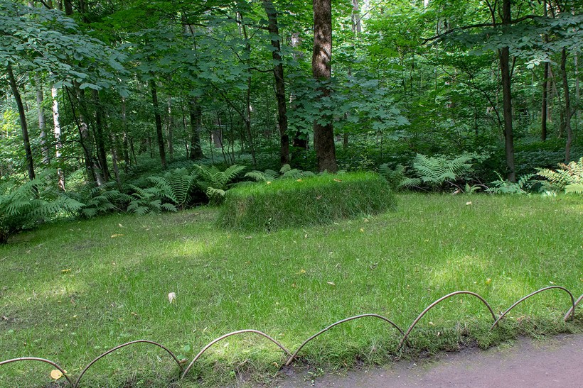 После посещения усадеб группа предоставлена сама себе, и обычно все отправляются смотреть на могилу Толстого. Я тоже не стала исключением и, следуя указателям, бодро зашагала по лесной дорожке. Честно говоря, если бы я предварительно не видела это место на картинках, то легко могла бы пройти мимо. Могила представляет собой поросший травой холмик, без крестов и опознавательных знаков. Очень громкое и тихое место одновременно.