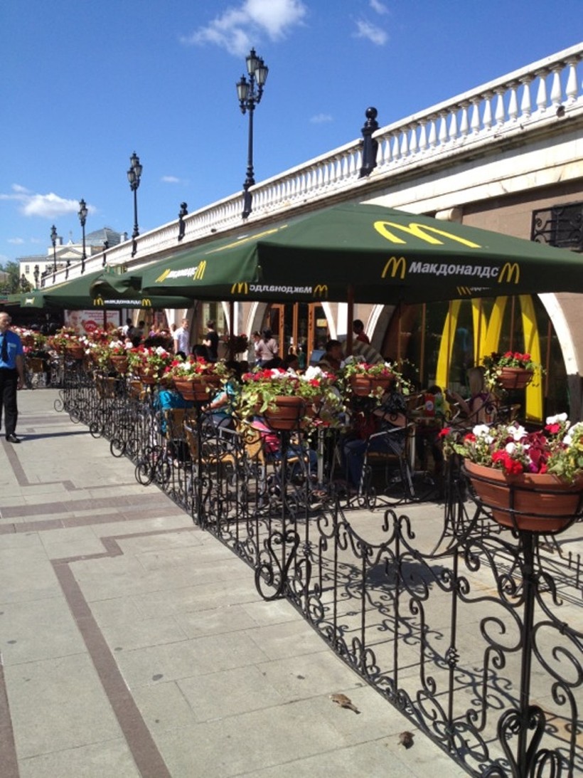 Людей здесь почти всегда ну просто невероятное количество. Придётся стоять в очереди за едой, потом в очереди в туалет. И далеко не факт, что получится найти свободное место за столиком. Если вы хотите полакомиться в Макдоналдсе, советую немного пройтись до другого представителя этой сети фаст-фуда. Например, перейдите через дорогу, на другую сторону Тверской улицы. Пройдитесь минут пять до Газетного переулка. Здесь вас встретит большой, куда менее загруженный Макдоналдс.