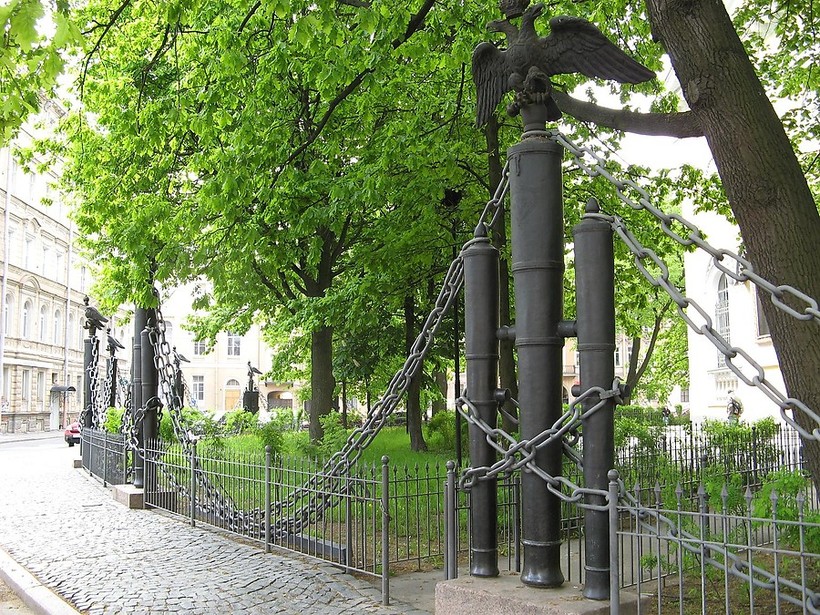 Архитектор создал её в честь разгрома турков в сражениях 1828–1829 гг. не из чугуна, как это происходило обычно, а из 102 трофейных орудий, забранных у турков из взятых крепостей: Измаила, Варны и других. Мы с вами и сегодня можем различить названия пушек на их стволах: «Гром извергающий», «Священный полумесяц» и пр.