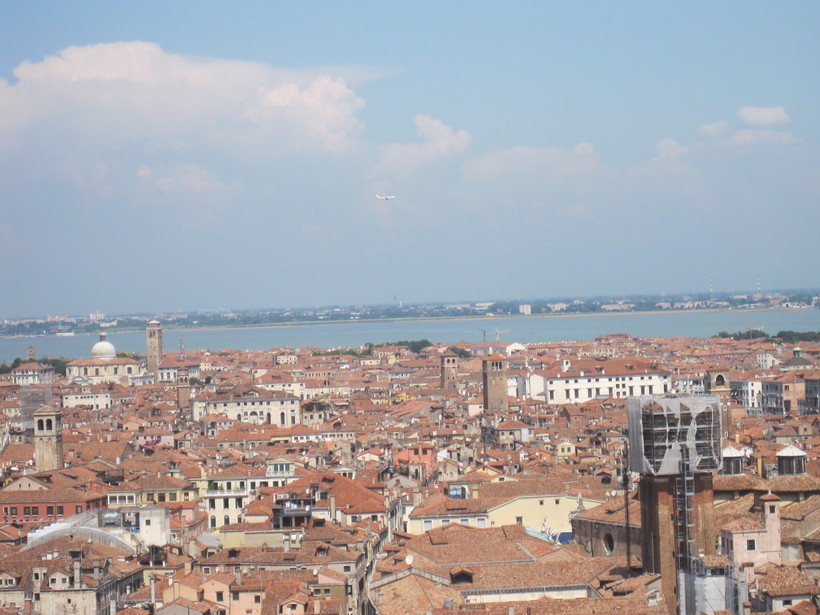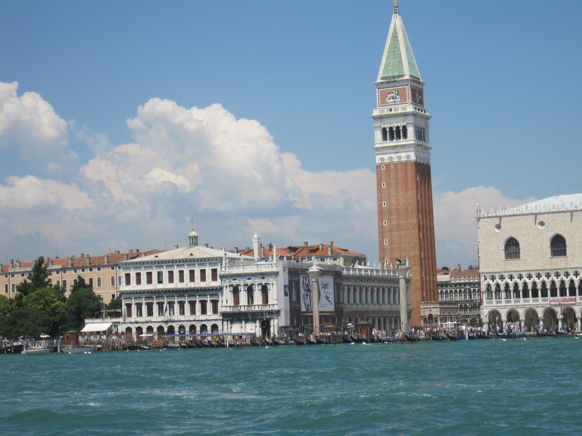 Экскурсия длилась около трёх часов и я помню её так хорошо, как будто она была вчера. Через несколько лет я приехала отдыхать на Венецианскую Ривьеру. Выйдя из поезда на вокзале в Венеции, я пошла по дороге, которую показала мне экскурсовод к площади Сан-Марко и весь мой путь я прошла так, как будто ходила по нему много раз и каждый день. Все вокруг мне было знакомо, Венеция просто произвела слишком сильное впечатление и осталась в моей памяти навсегда. Конечно с гидом я посмотрела за одну экскурсию далеко не все. Поэтому, приехав в Венецию во второй раз, мне захотелось посмотреть на город в первую очередь с высоты. Я поднялась на колокольню на площади Святого Марка, чтобы увидеть Венецианскую лагуну во всей её красе.