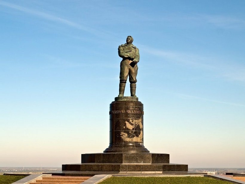 На самом верху находится памятник Чкалову, в честь которого и названа лестница, его ещё раньше называли "Сталинский сокол", если не ошибаюсь.