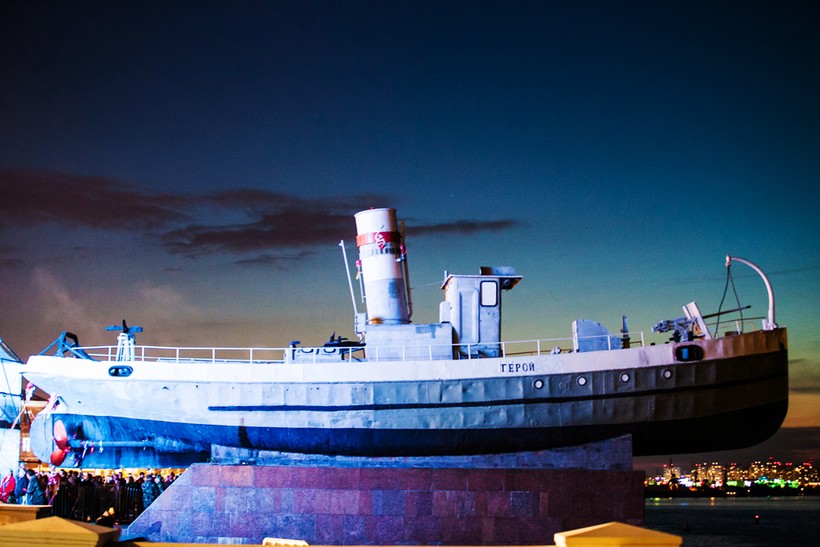 Чтобы подойти к очередной достопримечательности, нужно перейти основную дорогу. И вот он герой – памятник «катер «Герой», именно он участвовал в Гражданской войне и Великой Отечественной.