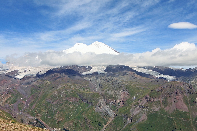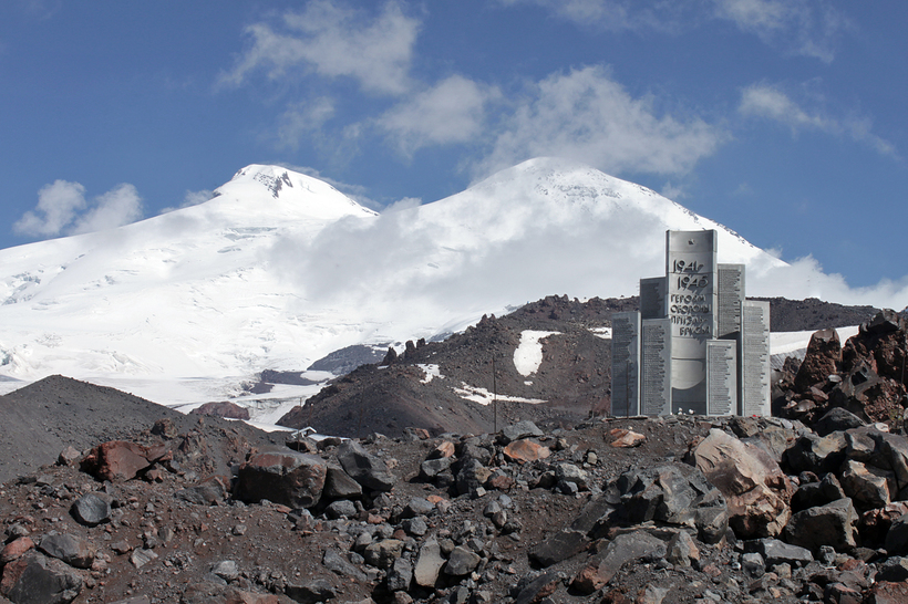 Эта самая высокая гора России и Европы состоит из двух вершин - Западной (5642 м) и Восточной (5621). Вершины разделены седловиной (около 5200 м). Это потухший стратовулкан, последнее его извержение датируется 50 г. н. э. По одной из древних легенд где-то на склонах Эльбруса прикован к скале титан Прометей.