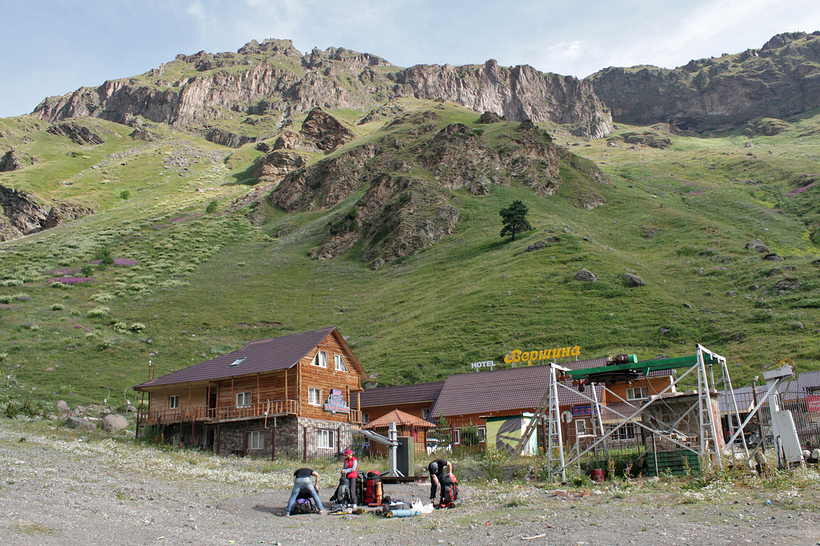 Построен приют на месте сгоревшей в 1998 году трехэтажной гостиницы, самой высокогорной в нашей стране. Я еще помню ее из детства.
