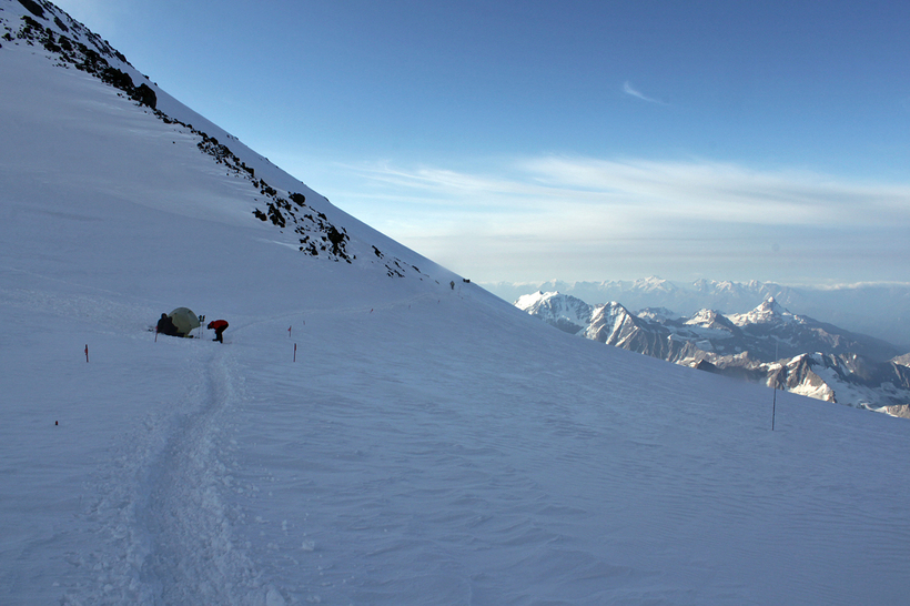 Потом зарегистрировались у спасателей, послушали байки про горе-восходителей и разные поучительные истории. После обеда дошли до скал Пастухова (4700 м), спустились вниз и пораньше легли спать – завтра тяжелый день.