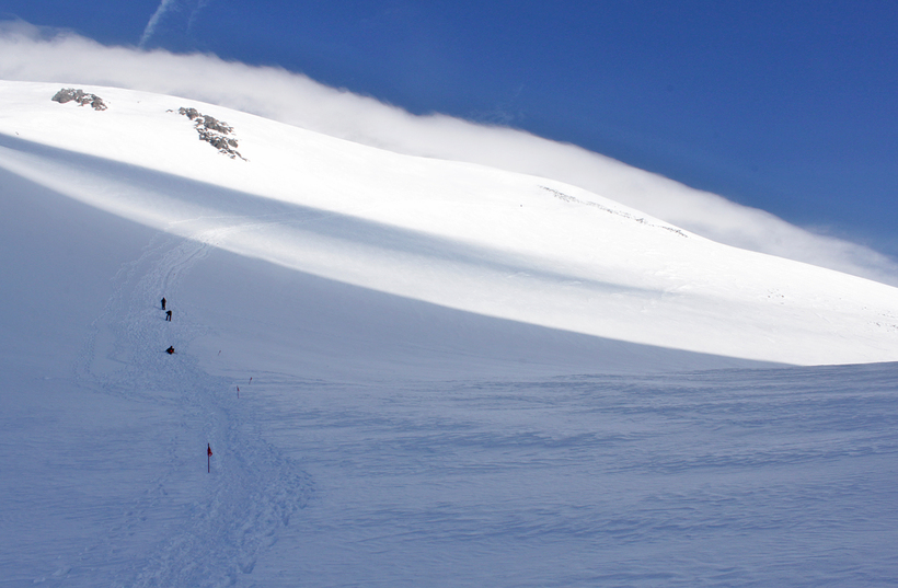 Читал, что здесь некоторые не выдерживают и поворачивают назад. У меня таких мыслей не возникало, мыслей вообще, было мало, в голову лезла всякая ерунда. Идти становилось все тяжелее. Перед финальным взлетом основательно отдохнули и подкрепили силы горячим чаем. Это сразу придало бодрости, и идти стало веселее. Откуда-то появилась уверенность, что все сегодня получится.