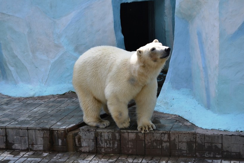 Дальше идут опасные хищники, поэтому, близко к клеткам подходить нельзя. Пройдя семейство кошачьих, мы подошли к белым медведям, мне их так стало жалко, но переживать не стоит, организаторы обеспечивают в их пещере-вольере оптимальную температуру для хорошего самочувствия.