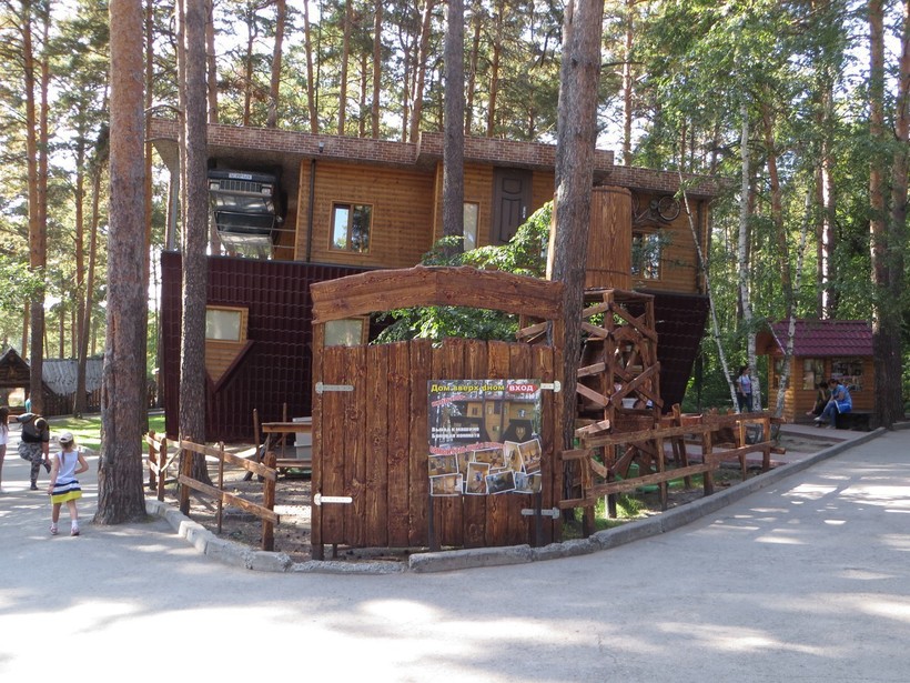 Минуя пони, мы подошли к замку ужаса (что-то наподобие комнаты страха), видимо, для тех, кто мало получил адреналина после ягуара с тиграми. Недалеко есть надувной батут, тир, фонтан, детские лодочки, для малышей стоят деревянные образцы следов многих зверей.
