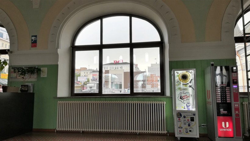 Преодолев такой «контрольно-пропускной пункт», мы заняли места на стульях – в том зале ожидания, который расположен в непосредственной близости к выходу в город, их не так много, но всем, кто находился там тем утром, было достаточно. В зале есть автоматы по продаже напитков и снеков. Чтобы попасть в туалет, нужно спуститься этажом ниже. Камера хранения багажа находится снаружи – чтобы туда попасть, нужно покинуть здания и двигаться по направлению указателей.