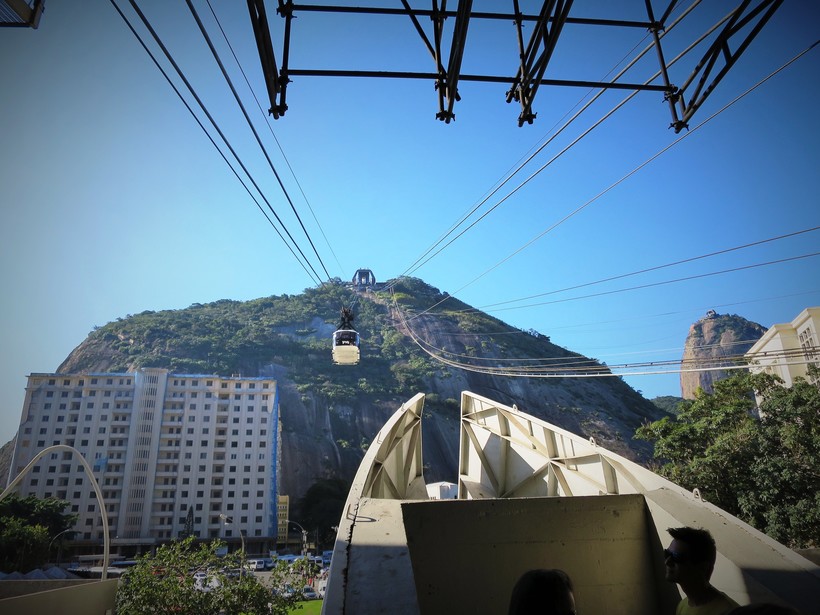 По сути дела, в стомость билета на канатную дорогу включен не один подьем, а целых два перемещения. От остановки"Пляж Vermelha" подьем на гору Morro da Urca, и с нее дальше на вершину Пау де Асукар.