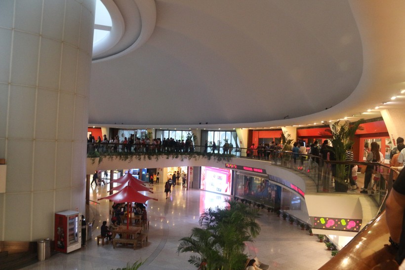 Чтобы подняться на смотровую площадку, сначала надо отстоять очередь в лифт. У меня на очередь ушло минут 15, так как была я в Шанхае еще не в сезон - в конце мая. А так в высокий сезон можете приготовиться простоять в этом коридоре минут сорок - час.