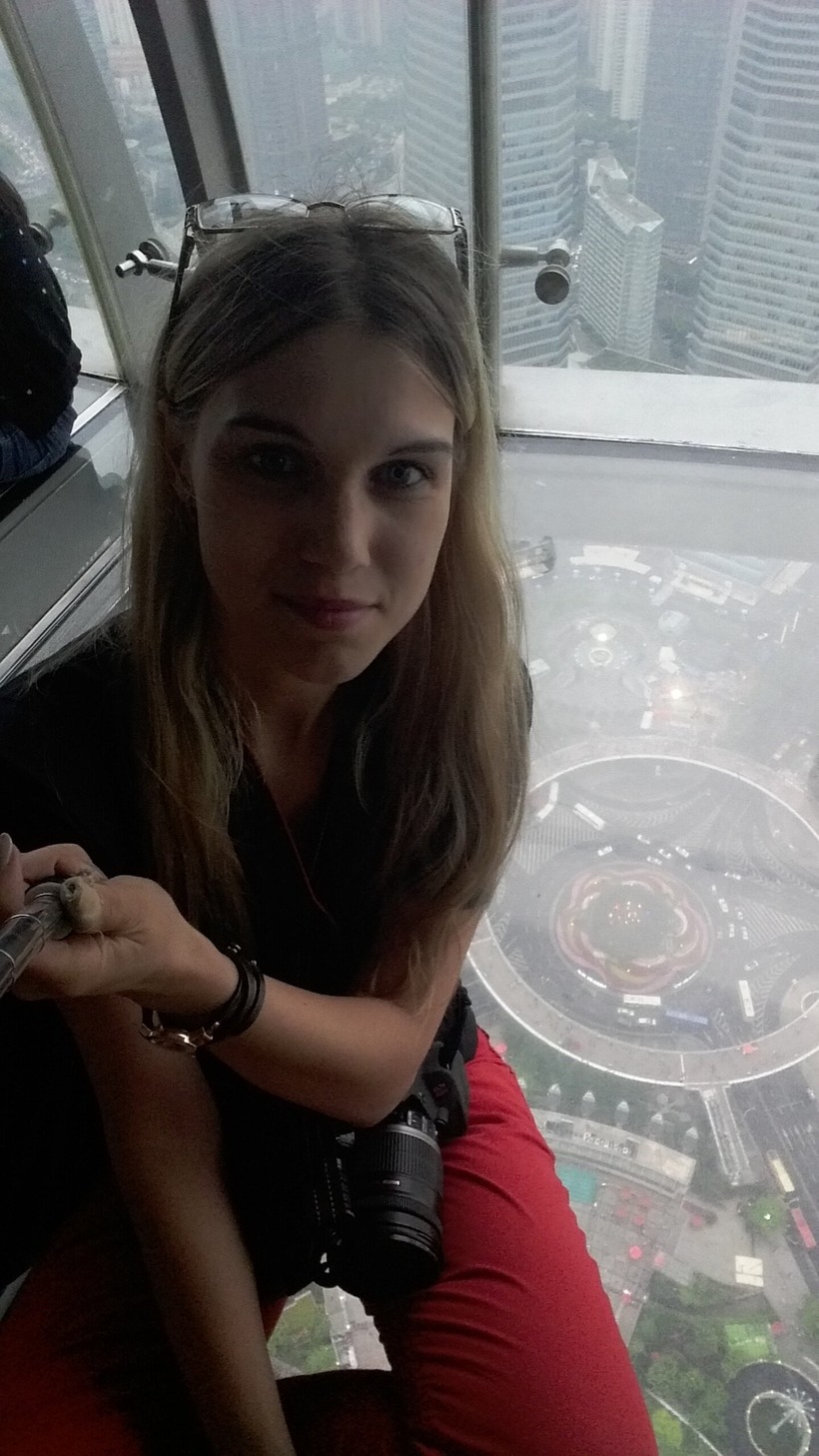 Этажом выше еще одна смотровая площадка, но уже с обычным полом, вот тут я чувствовала себя уже уверенней. К тому же ощутила себя какой-то местной знаменитостью, когда ко мне стали подходить китайцы и просить сфотографироваться с ними. Я уже знала, что европейцы, да еще и со светлыми волосами, у них пользуются особой популярностью и к ним бегут фотографироваться, как к диковинным зверушкам :)