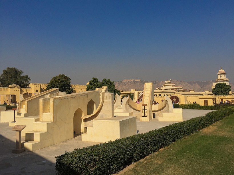 Когда я приехала в город Джайпур- столицу самого красочного и сказочного штата в северной Индии Раджастан, то попала в атмосферу полнейшего хаоса и вездесущих рикш. Джайпур- это так называемый "розовый" город Индии. Но вот комплекс Джантар Мантар оказался вовсе не розовым, а вполне себе желтым! Это название встречается не только здесь, но и в других городах Индии. Все дело в том, что махараджа Джай Сингх 2-й построил аж пять астрономических обсерваторий в тогдашних своих владениях в северной и центральной Индии. Математика и астрономия были страстью махараджи. Вообще в то время им уделяли активное внимание в классических школах- еще одна особенность влияния Великих Моголов на развитие Индии.
