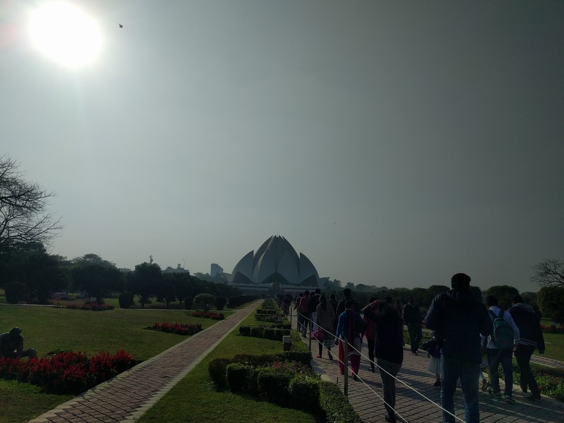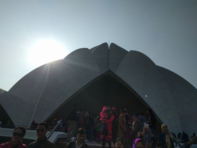 Если будете у храма во второй половине дня, то солнце станет жестко засвечивать кадр. Чтобы сделать пару хороших снимков советую фотографироваться с боковой или задней части Лотоса. Так удастся запечатлеть каждую деталь сооружения без пересветов)
