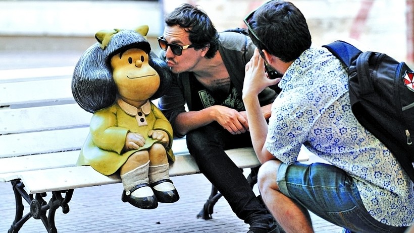 Неподалеку от пощади Дорэго по улице Дефенса на простой лавочке сидит героиня аргентинских комиксов и мультфильмов Мафальда. Иногда я думаю, а не она ли стала прообразом нашей Масяни? С Мафальдой все очень любят фотографироваться.