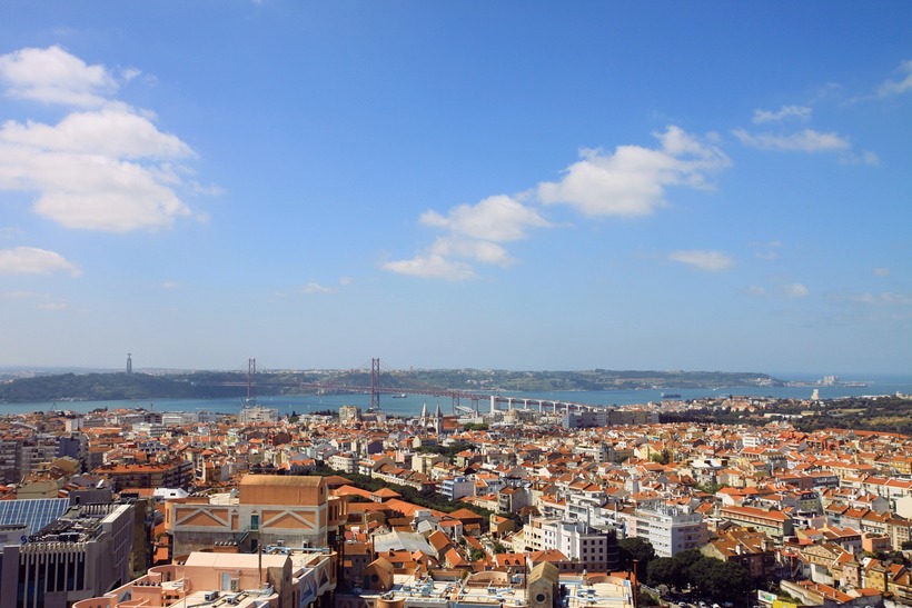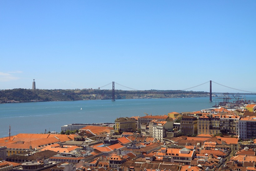 Со смотровой площадки замка Святого Георгия вы так же увидите мост 25 апреля. Посещение самого замка обойдется в 8,5 евро. На площадку попадете сразу, как пройдете через турникет.Здесь вид на мост это приятное дополнение к основной экскурсии.