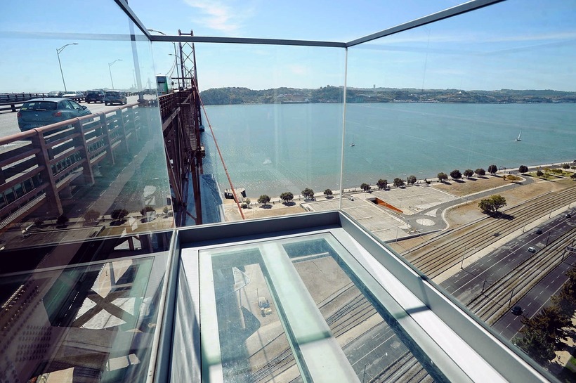 Самый спорный вид, на мой взгляд, со смотровой площадки Pilar 7, которая расположена, исходя из названия, на 7 опоре моста. Лифт поднимается на уровень проезжей части. Соответственно, вы будете видеть мост так же, как если просто проедете по нему. Стоимость подъема 6 евро. Мы предпочли, вместо этого сомнительного удовольствия, еще раз прогуляться вдоль реки.